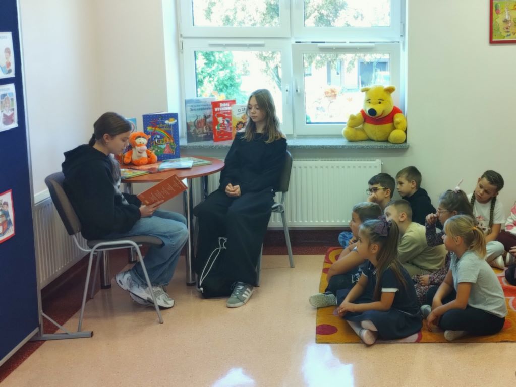 Dzień Głośnego Czytania obchodzony był w naszej szkole 29 września. W bibliotece zorganizowano spotkania czytelnicze dla oddziałów przedszkolnych z naszej szkoły. Dzieci razem ze swoimi wychowawcami wysłuchały czytanie bajki Braci Grimm w wykonaniu starszych uczennic z klasy 8c: Aleksandry Langner oraz Amelii Gzyl. Niezwykłą interpretację bajki pt. “Chcę być dinozaurem” zaprezentowały Pani Dyrektor Renata Pelczar oraz Pani Psycholog Agnieszka Zimna – Paluch. Podczas spotkania w bibliotece zasłuchane dzieci mogły przekonać się, że książki są jak skrzydła, które mogą unieść czytelnika wysoko, ku niezapomnianej przygodzie. Bibliotekarka zachęca do częstego otwierania drzwi biblioteki, które prowadzą do świata wyobraźni, przygody, mądrości i magii.