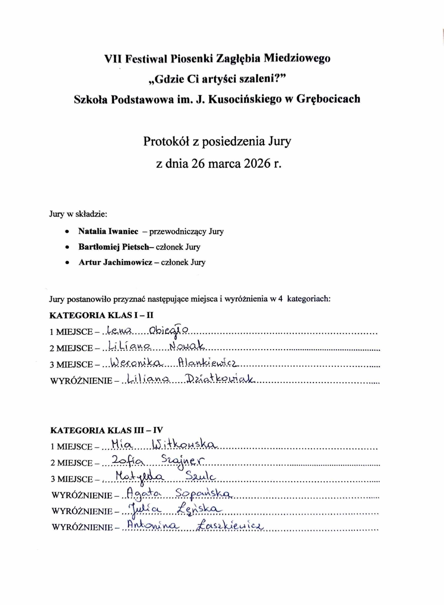 Protokół z posiedzenia Jury