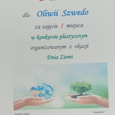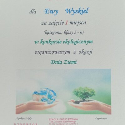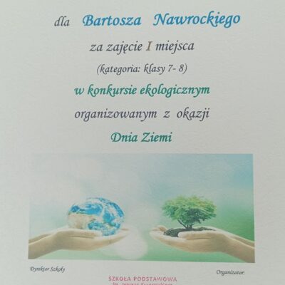 - Dyplom wręczony w konkursie z okazji Dnia Ziemi