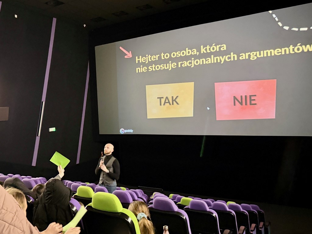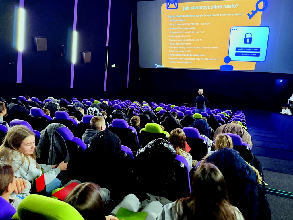Uczniowie klas 5a, 5b, 6a i 4b wzięli udział w multilekcji z prelegentem podczas spotkania w Multikinie w Głogowie na temat cyberprzemocy. Dzieci mogły wziąć aktywny udział w dyskusji i przypomnieć sobie ważne informacje dotyczące bezpiecznego funkcjonowania w internecie. Po edukacyjnym spotkaniu odbył się seans filmowy pt. „Mój brat robot”, który wprowadził bardzo ważną tematykę roli w grupie społecznej, akceptacji i zrozumienia. To była bardzo udana multilekcja, która zostanie przeanalizowana z uczniami na najbliższych godzinach wychowawczych.