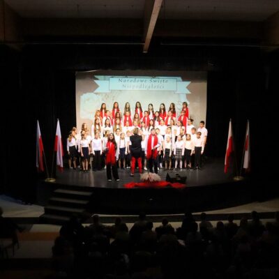 Z okazji Narodowego Święta Niepodległości w naszej szkole odbył się uroczysty apel upamiętniający 11 listopada. Podczas wydarzenia wystąpił chór szkolny klas 4–8, prezentując pieśni patriotyczne w przygotowanym repertuarze. Uczniowie z koła teatralnego z klas 4–6 przedstawili inscenizację ukazującą protest dzieci z Wrześni, przypominając o odwadze i determinacji młodych Polaków walczących o prawo do nauki w ojczystym języku. Uroczystość przebiegła w podniosłej atmosferze i była wartościową lekcją historii dla całej społeczności szkolnej.