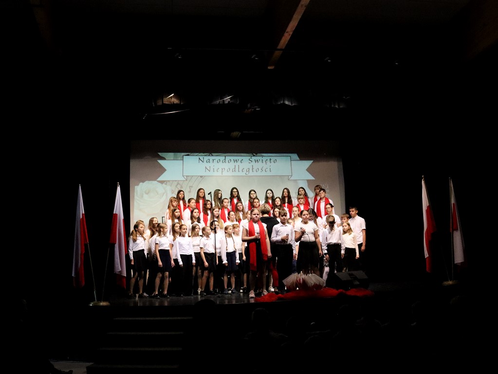 Z okazji Narodowego Święta Niepodległości w naszej szkole odbył się uroczysty apel upamiętniający 11 listopada. Podczas wydarzenia wystąpił chór szkolny klas 4–8, prezentując pieśni patriotyczne w przygotowanym repertuarze. Uczniowie z koła teatralnego z klas 4–6 przedstawili inscenizację ukazującą protest dzieci z Wrześni, przypominając o odwadze i determinacji młodych Polaków walczących o prawo do nauki w ojczystym języku. Uroczystość przebiegła w podniosłej atmosferze i była wartościową lekcją historii dla całej społeczności szkolnej.