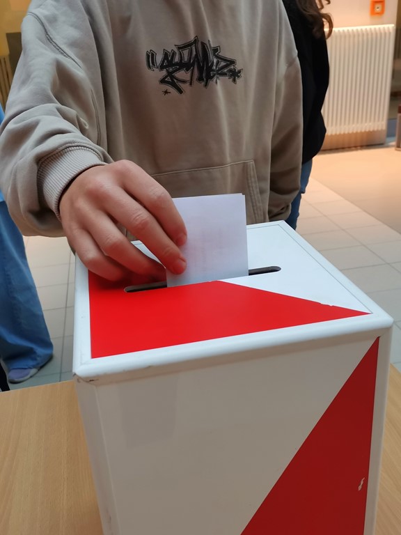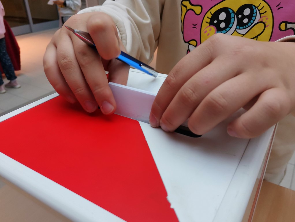 - Uczeń podczas wrzucania głosu do urny wyborczej