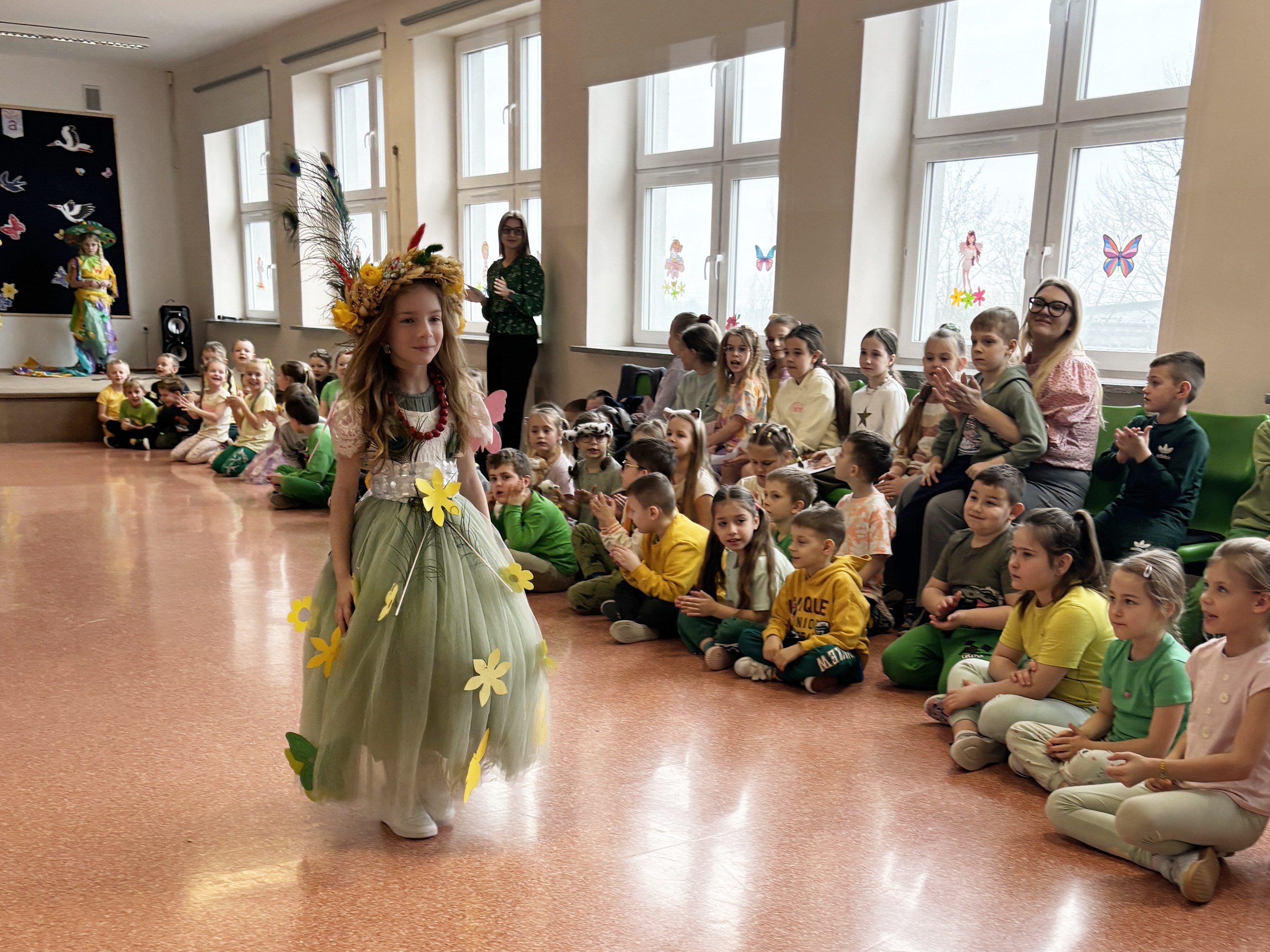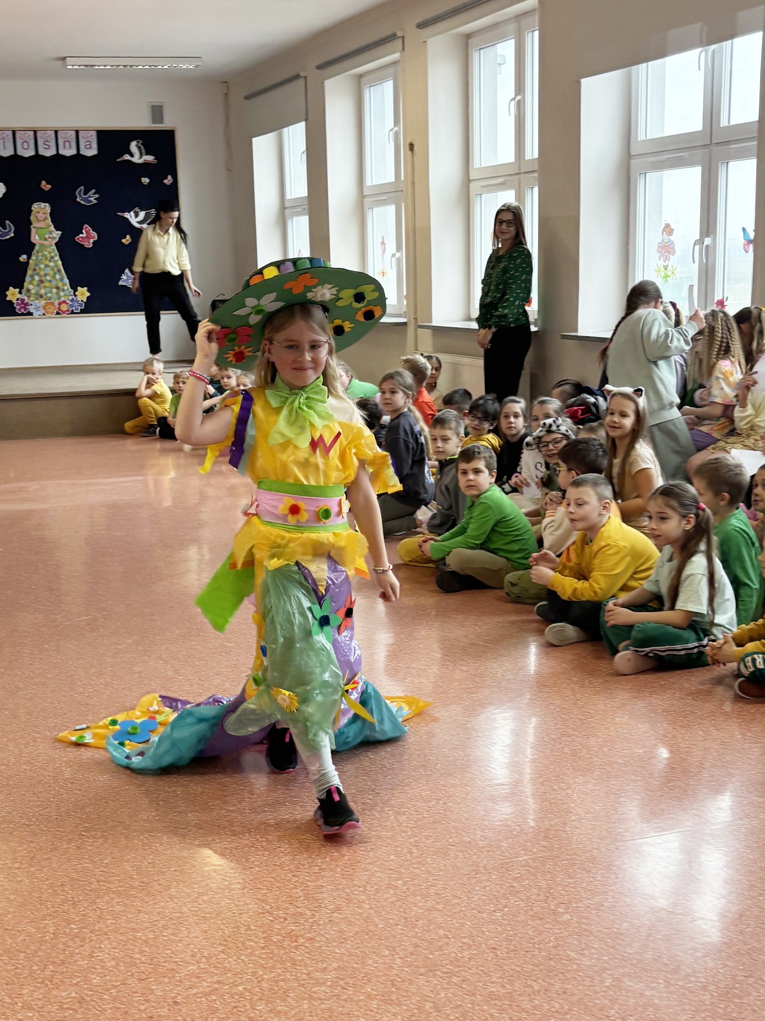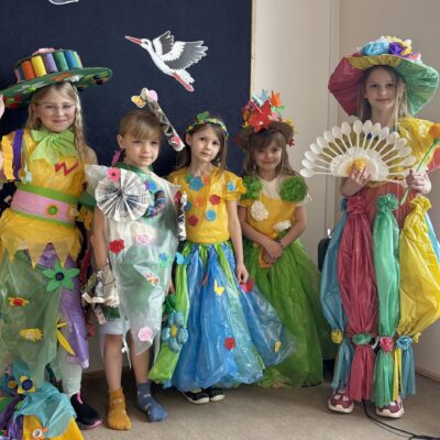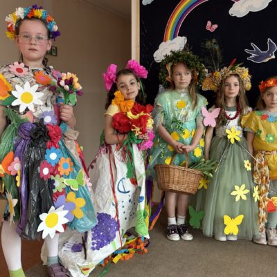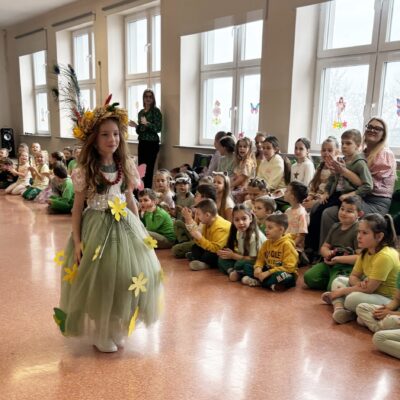 Pierwszy Dzień Wiosny upłynął radośnie i aktywnie w klasach młodszych oraz oddziałach przedszkolnych. Dzieci zaangażowały się w stworzenie ekologicznej Pani, co rozwijało nie tylko kreatywność, ale także uczyło troski o środowisko. Wyjątkowe Panie Wiosny zaprezentowały swoje stroje w pokazie mody. Dzieci wykonały także różnorodne prace plastyczne o tematyce wiosennej, które ozdobiły szkolne korytarze.