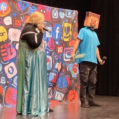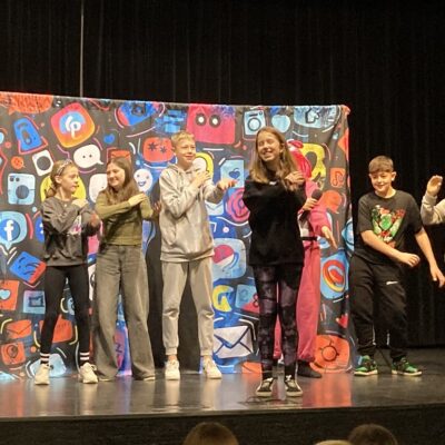 Spektakl „Ściema 2.0 – czyli pułapki Internetu w ciekawy i interaktywny sposób poruszał ważne tematy związane z zagrożeniami, jakie niesie za sobą nieodpowiedzialne korzystanie z Internetu, telefonu i social mediów. Współczesne dzieci mnóstwo czasu spędzają przed ekranami, dlatego tak ważne jest, aby jak najczęściej tłumaczyć im jakie niebezpieczeństwa czyhają w sieci. Interaktywna forma, zapraszanie uczniów na scenę i wspólna zabawa sprawiły, że młodzież dobrze się bawiła. Dowcipne dialogi i ciekawe zwroty akcji przyciągnęły uwagę publiczność od początku do końca, mamy nadzieję, że pozyskana wiedza pozostanie w świadomości uczniów na długo. Spektakl został sfinansowany ze środków Gminnej Komisji ds. Rozwiązywania Problemów Alkoholowych w Grębocicach.