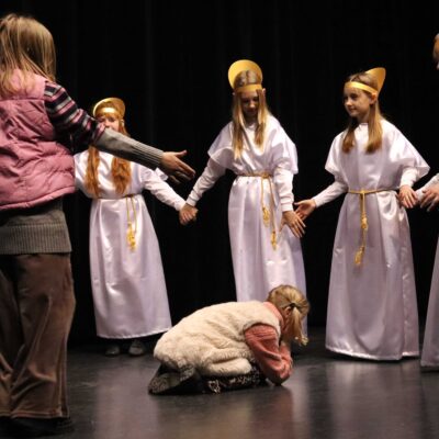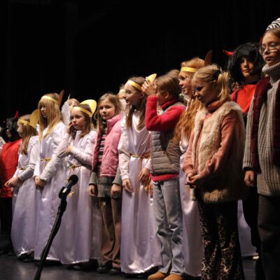 W poniedziałek 27 stycznia teatr szkolny zaprezentował społeczności szkolnej przedstawienie noworoczne. Wystąpiły w nim kolejno wszystkie grupy teatralne klas 4-8. Mottem przewodnim spektaklu były słowa pierwszej zwrotki kolędy ,,Nowy Rok bieży”, którą przepięknie zagrał na skrzypcach jeden z młodych aktorów. Artyści przygotowali przedstawienie pod kierunkiem opiekuna teatru szkolnego – pani Małgorzaty Rutkowskiej.