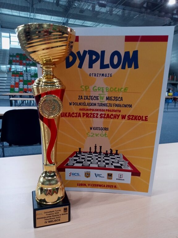 11.06.2025r odbył się DOLNOŚLĄSKI TURNIEJ FINAŁOWY Ogólnopolskiego Projektu „Edukacja przez Szachy w Szkole” Jest to turniej dla uczniów klas I – III. W Lubinie grało ponad czterystu młodych szachistów z trzydziestu pięciu szkół województwa dolnośląskiego i lubuskiego. W tym doborowym gronie wystartowało 37 szachistów naszej szkoły. Po rozegraniu siedmiu rund i przeliczeniu punktów okazało się, że jesteśmy czwartą szkołą w klasyfikacji końcowej. Najwyżej indywidualnie na VI pozycji uplasowała się Sara Buczkowska. Należy pogratulować wszystkim zawodnikom udanego startu szczególnie pierwszoklasistom, dla których były to pierwsze tak duże i ważne zawody. Graliśmy w składzie: