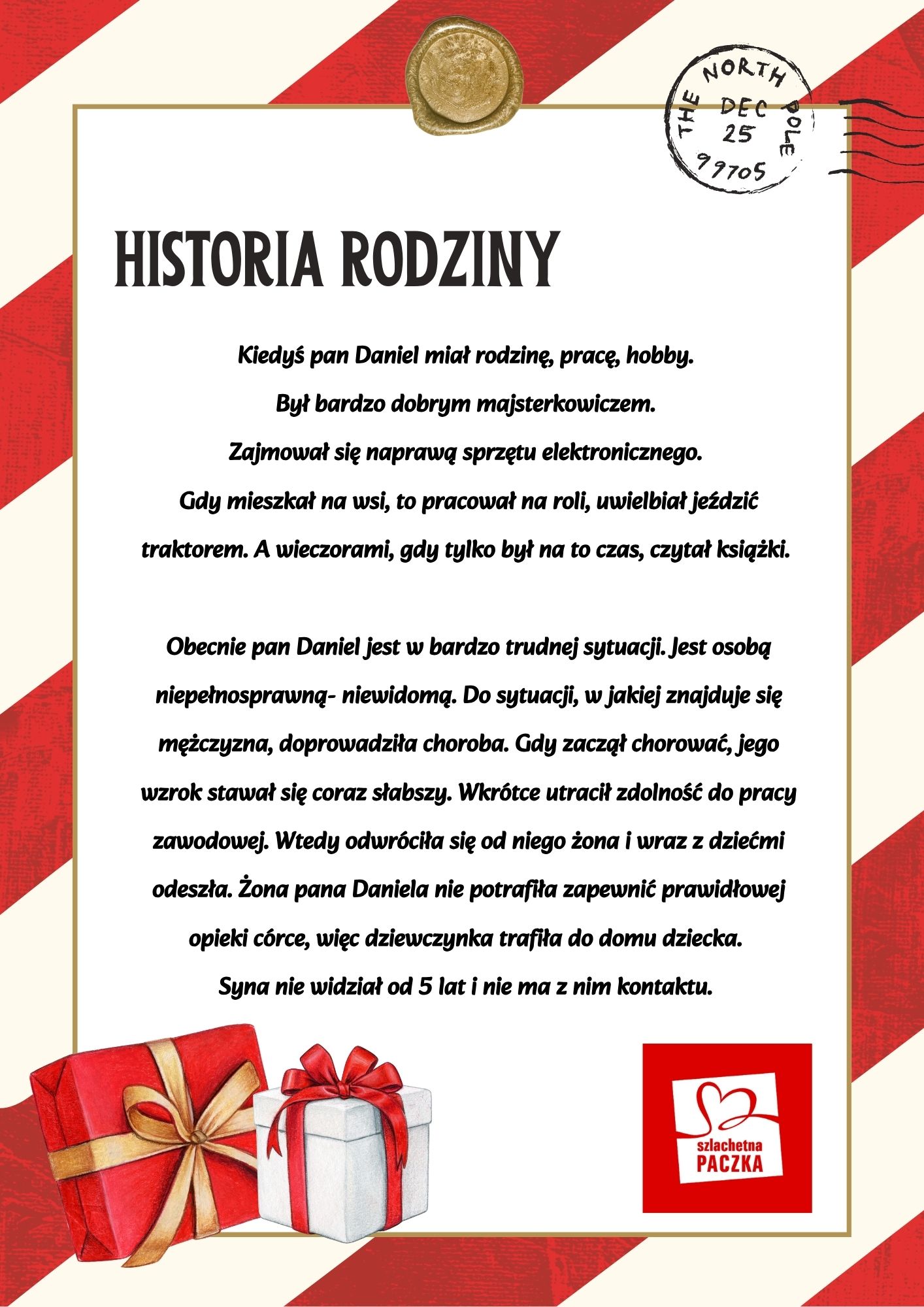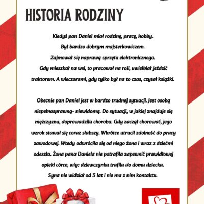 Szlachetna Paczka Zachęcamy do udziału w akcji Szlachetna Paczka! Grafika prezentująca historię rodziny Grafika prezentująca historię rodziny Grafika prezentująca potrzeby rodziny Szymon Kaskow2024-11-19T12:20:09+01:0019 listopada, 2024| Udostępnij FacebookTwitterLinkedInWhatsAppEmail
