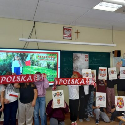 Z okazji obchodów Święta Niepodległości oraz w ramach edukacji patriotycznej i obywatelskiej – uczniowie klas 4- 8 przypomnieli historię polskiego hymnu narodowego. Na lekcjach historii każdy wykazał się znajomością “Mazurka Dąbrowskiego “. Byli również tacy, którzy nauczyli się sześciu zwrotek. W trakcie odśpiewania hymnu uczniowie mieli patriotyczne elementy ubioru i zdali na oceny celujące.