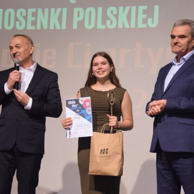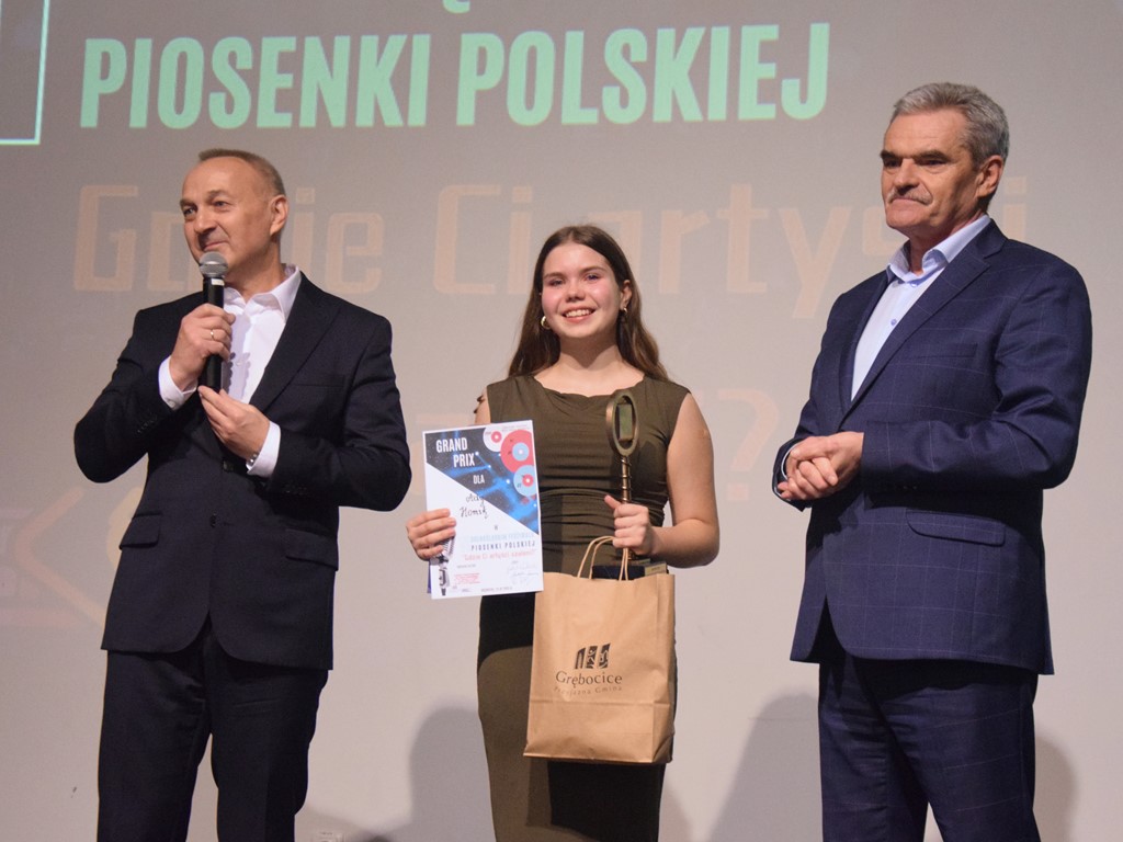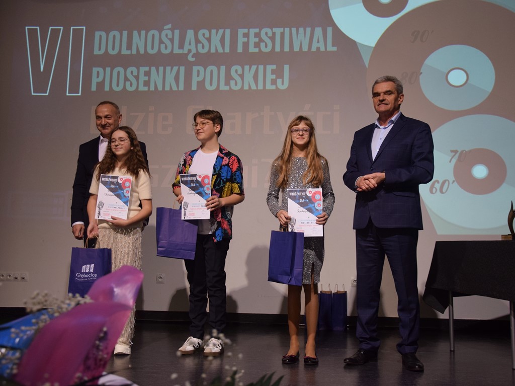 VI Dolnośląski Festiwal Piosenki Polskiej “Gdzie Ci artyści szaleni?” już za nami. W tym roku Jury w osobach – Natalia Iwaniec-Pietsch, Jakub Kotowski i Artur Jachimowicz przesłuchało 48 wokalistów w 4 kategoriach wiekowych.  Honorowy patronat Festiwalu został objęty jak co roku przez Wójta Gminy Grębocice pana Romana Jabłońskiego. Gratulujemy wszystkim nagrodzonym, wyróżnionym i każdemu z osobna. Bardzo wysoki poziom, świetne podkłady, różnorodność piosenek z lat przecież odległych młodym wokalistom wpływa na wyjątkowy charakter Festiwalu. Uczestnikami naszej szkoły byli Ada Homik (Grand Prix), Antonina Łaszkiewicz (2 miejsce), Kaja Sadkowska (2 miejsce), Lena Obiegło (wyróżnienie), Lena Kucharska (wyróżnienie), Mia Witkowska, Jagoda Wodniczak i Dawid Mazurek.