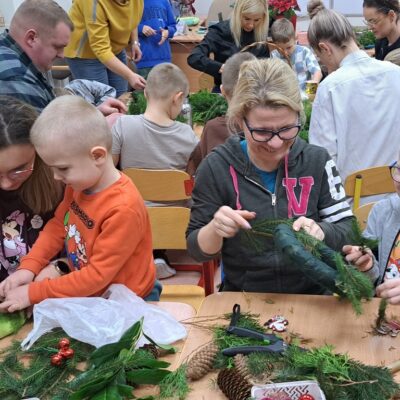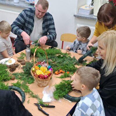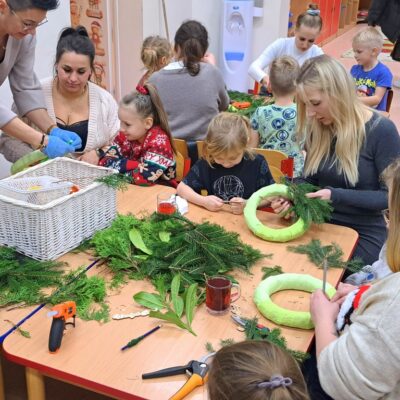 9 i 10 grudnia w oddziałach przedszkolnych odbyły się niezwykle radosne i przywołujące Magię Świąt Bożego Narodzenia – warsztaty z tworzenia Bożonarodzeniowych Wianków. Na dzieci oraz rodziców czekał słodki poczęstunek z ciepłą herbatką. Okres poprzedzający Boże Narodzenie jest wspaniałą szansą na integrację dzieci oraz rodziców, wzmacnianie wzajemnych relacji, a także rozwijanie kreatywności. Przez te dwa dni powstało wiele świątecznych wianków, które ozdobią domy naszych zerówkowiczów. Warsztaty były radosnym przeżyciem dla wszystkich uczestników.