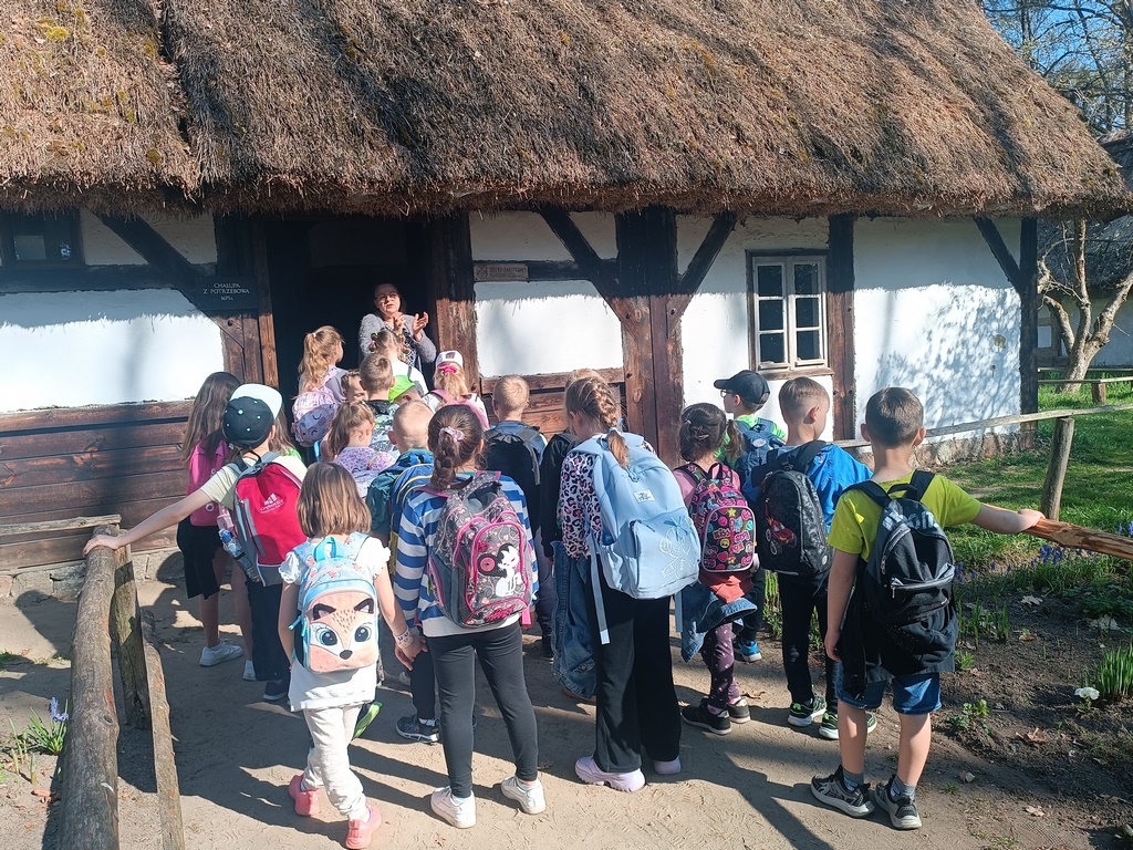 16 kwietnia uczniowie klasy 1 a i 1 b wybrali się na wycieczkę do Muzeum Etnograficznego w Ochli. W muzeum pierwszoklasiści odwiedzili kilka zabytkowych obiektów. Wszystkich zachwyciły chaty pokryte strzechą, ówczesne izby mieszkalne, miejsca do sporządzania posiłków, naczynia i przedmioty codziennego użytku. Dzieci miały możliwość zobaczenia warsztatu szewskiego i krawieckiego. Poznały również dawne przedmioty i maszyny używane w każdym gospodarstwie. Wiele emocji wzbudziła izba szkolna. Następnym punktem wycieczki były warsztaty pt. „Wokół wielkanocnej pisanki”. Na zajęciach dzieci poznały technikę zdobienia jajek woskiem. Używając szpilki umocowanej na patyczku, zamaczali ją w gorącym wosku i nakładali wzór na wydmuszki jajek, barwili je i otrzymywali piękne pisanki. Po warsztatach dzieci udały się do Ogrodu Botanicznego w Zielonej Górze. Odwiedziły Mini ZOO. Pierwszoklasiści zachwycali się spotkanymi tutaj zwierzętami, np. danielami, surykatkami, papugami, pawiem, czy owcami. Wielką atrakcja dla dzieci był wspaniały plac zabaw w ogrodzie botanicznym. Pełni energii doskonale się bawili. Późnym popołudniem z uśmiechem na twarzy, pełni wrażeń i pozytywnych emocji wrócili do Grębocic.